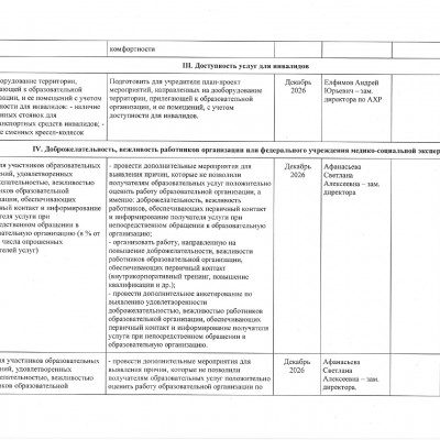План по устранению недостатков, выявленных в ходе независимой оценки качества условий оказания услуг