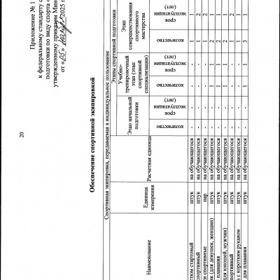 Оборудование и спортивный инвентарь, необходимые для прохождения спортивной подготовки
