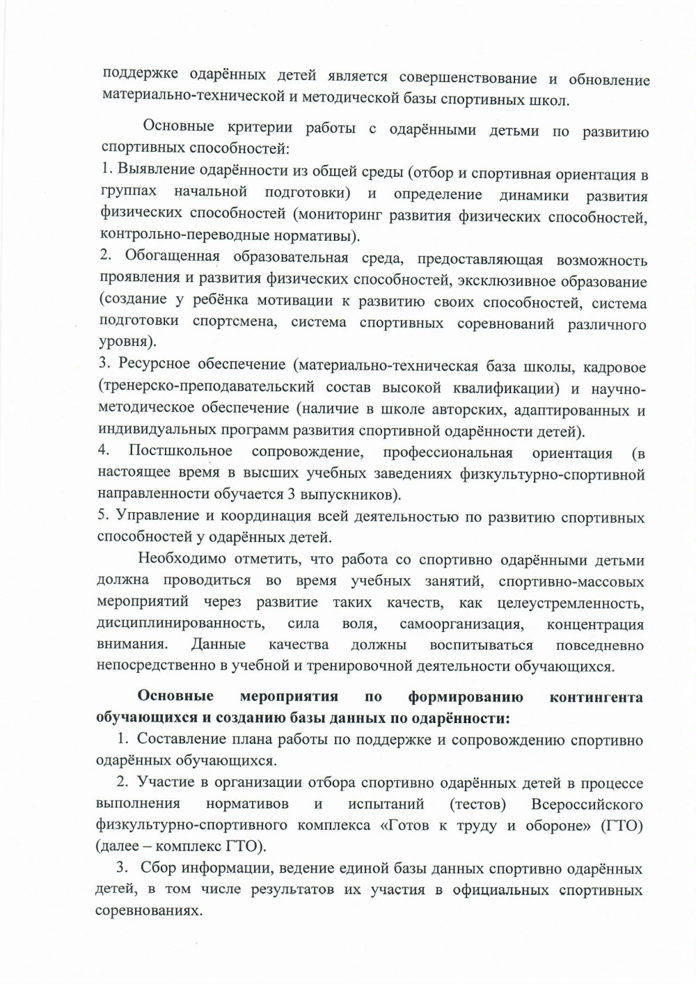 Программа организации работы со спортивно одарёнными детьми